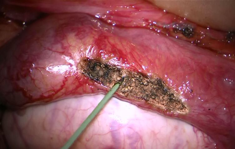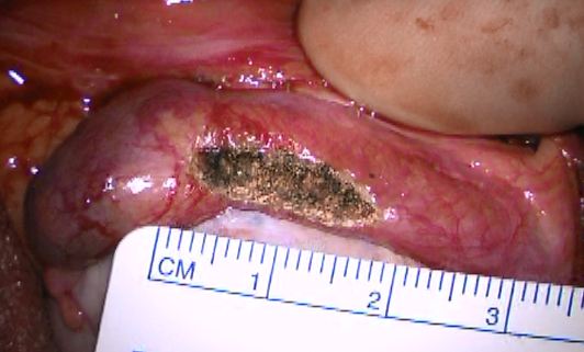 Here, high-power optical magnification with the operating microscope allows for identification of prominent seminiferous tubules (pale yellow structures at the tip of the instrument). There is a higher chance of having active spermatogenesis in these areas. Small pieces of tissue are then handed over to the andrologist in the operating room who examines the tissue under a bench microscope. If sperm are found, they can then be used for in-vitro fertilization with intracytoplasmic sperm injection.